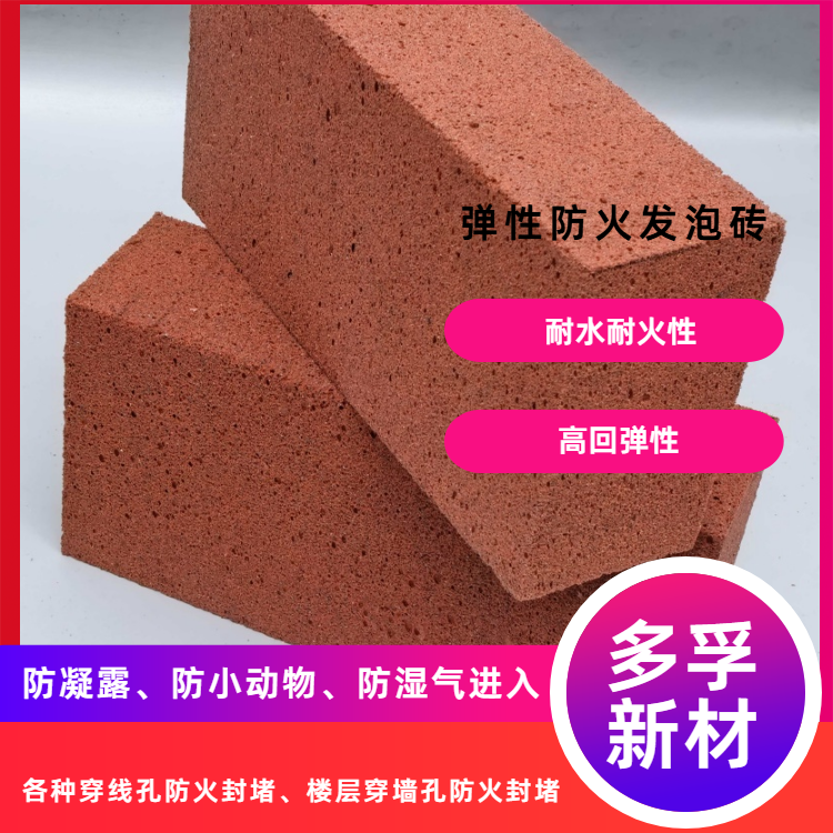 弹性防火发泡砖(防火砖)是一款具有超强防火性的软质回弹阻火模块,安装简单快速,容易切割,塑形填塞。防火筑材遇火时膨胀,形成均匀致密的碳纤隔热层,吸热阻火,从而达到隔绝热量的目的,并阻止氧气进一步向可燃物渗透造成火势蔓延。而且弹性防火筑材遇火膨胀后可以迅速填满缝隙,火和热就不会通过缝隙传到对侧。适用于线缆的多次穿越和维护,具有卓越的抗压性、烟密性、气密性,且表面美观。