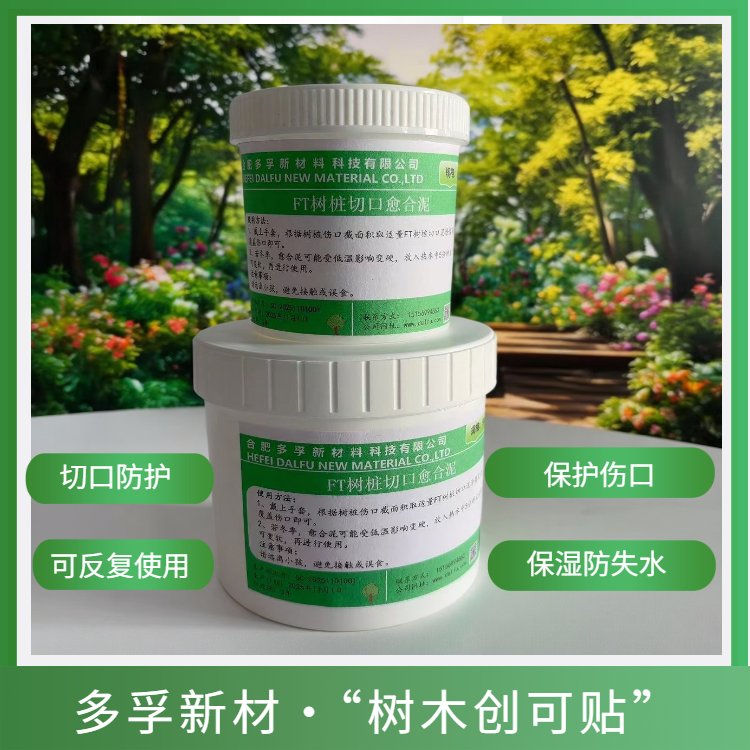 FT树桩切口愈合泥,FT树桩切口愈合泥的核心作用是保护树木伤口(如修剪、病虫害、机械损伤后的切口),防止病菌感染和水分流失,同时促进伤口组织愈合,减少腐烂风险。