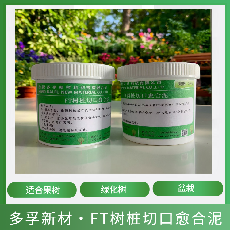 FT树桩切口愈合泥,FT树桩切口愈合泥的核心作用是保护树木伤口(如修剪、病虫害、机械损伤后的切口),防止病菌感染和水分流失,同时促进伤口组织愈合,减少腐烂风险。